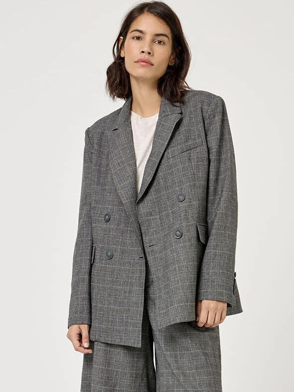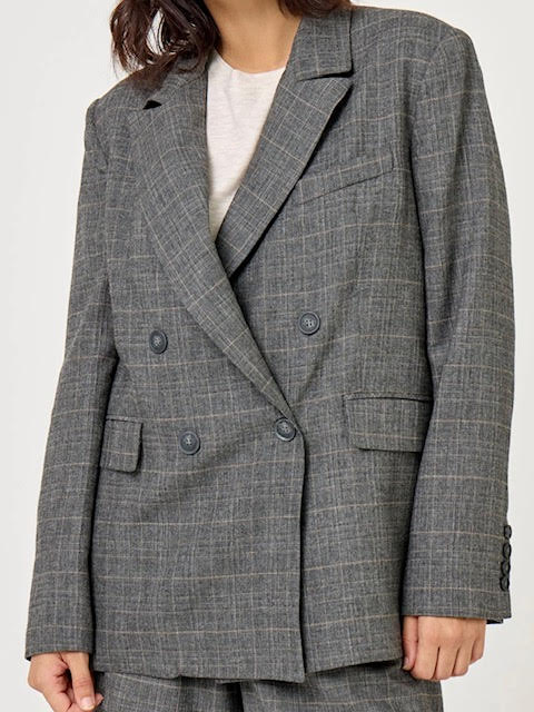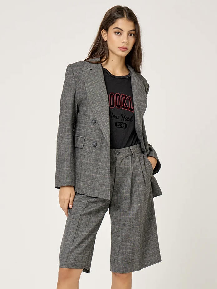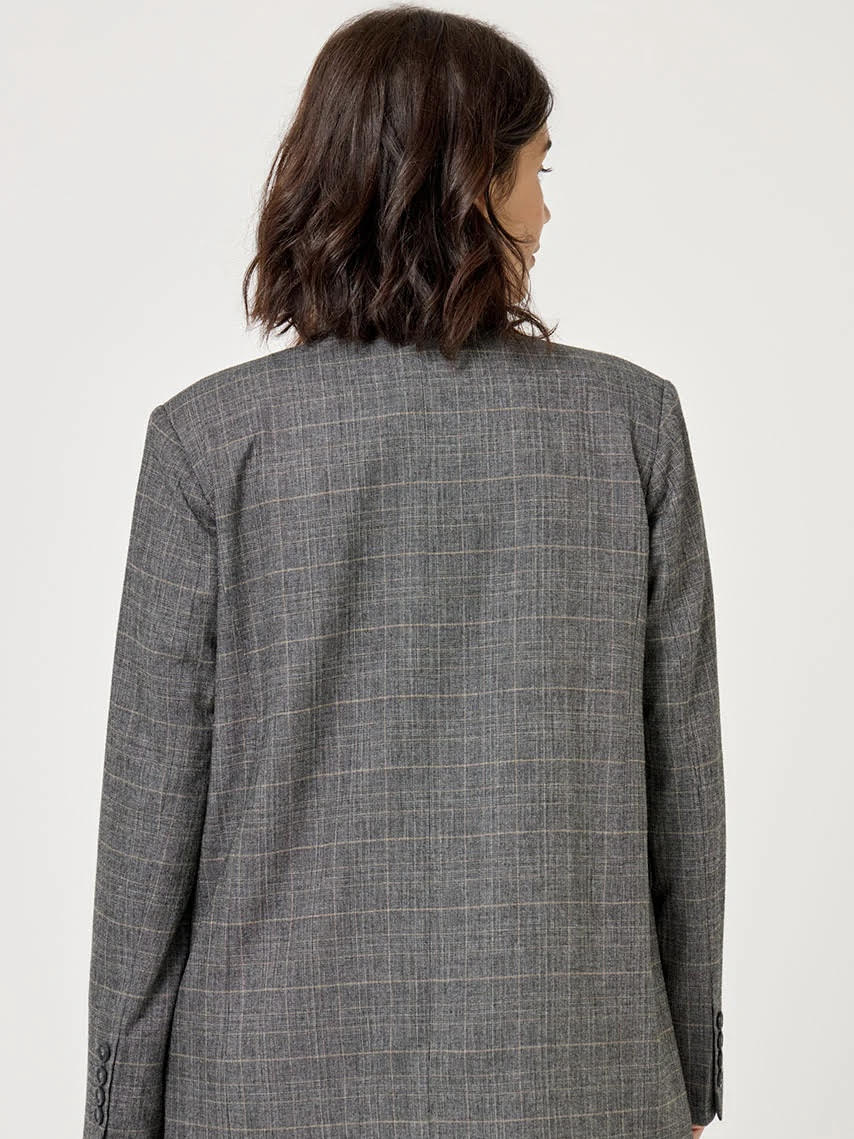 ג'קט מחוייט בגיזרה רכיסה כפולה קליל וספור שייקי בגוון אפור עם דוגמת משבצות עדינה אול אובר. הג'קט עשוי מבד נעים ואיכותי בגזרה רחבה וספור מודרנית המעניקה נינוחות וסטייל יחד.