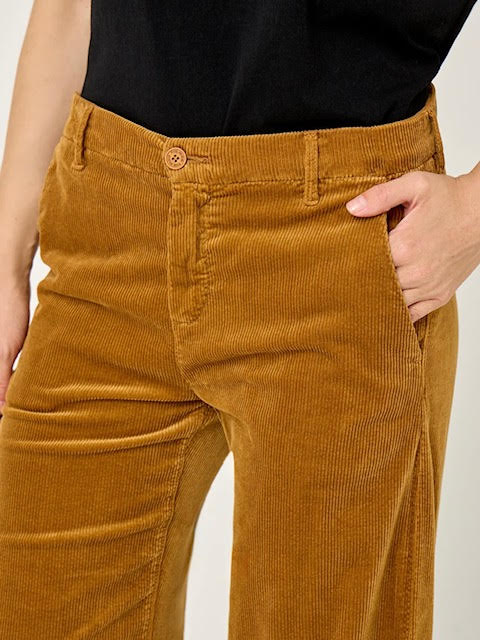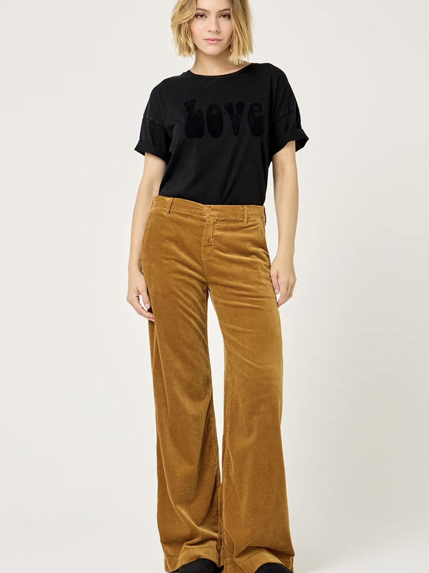 מכנסי קורדרוי אלגנטיים ונעימים במגע המעניקים מראה עדכני עם טאצ' רטרו. הבד העשיר והנופל מדגיש את גזרת הפלאר המתפשטת מהברך ויוצרת סילואט מחמיא ומאריך. למכנסיים מותן גבוהה לשדרוג הסטייל ולנוחות מקסימלית.