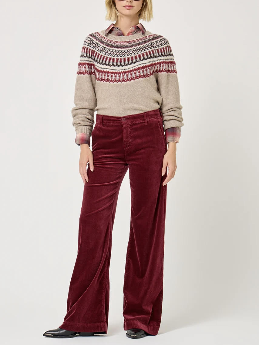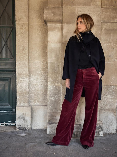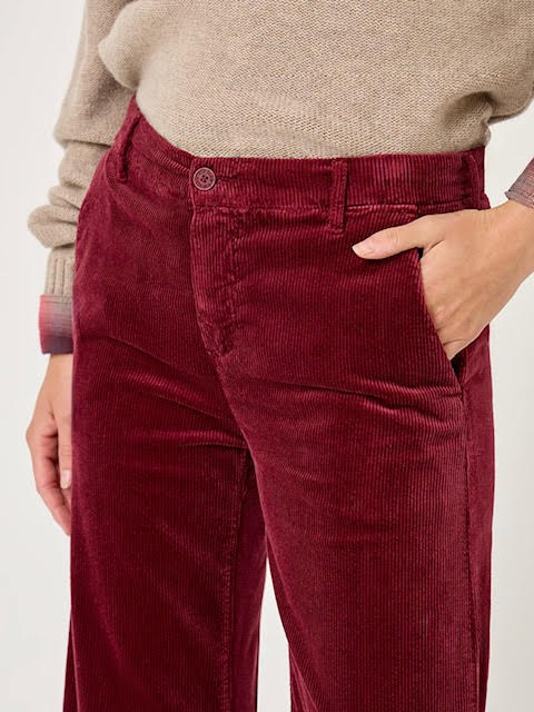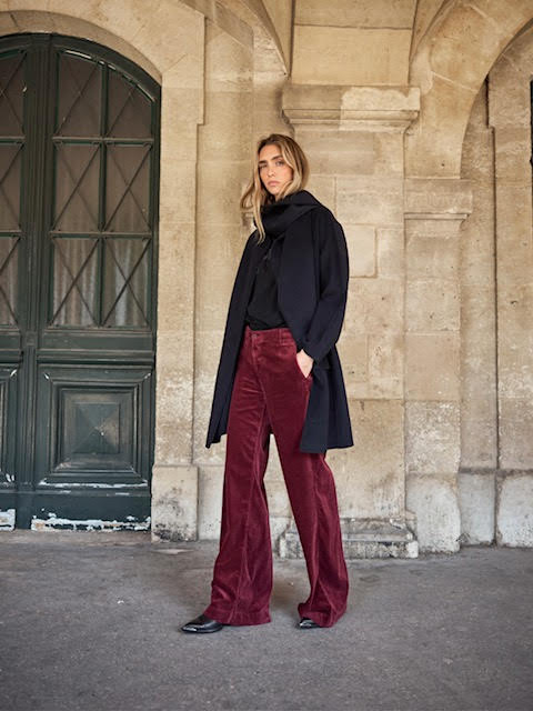 מכנסי קורדרוי אלגנטיים ונעימים במגע המעניקים מראה עדכני עם טאצ' רטרו. הבד העשיר והנופל מדגיש את גזרת הפלאר המתפשטת מהברך ויוצרת סילואט מחמיא ומאריך. למכנסיים מותן גבוהה לשדרוג הסטייל ולנוחות מקסימלית.
