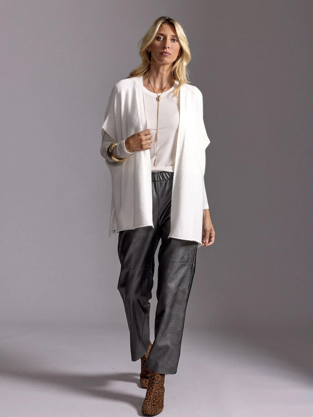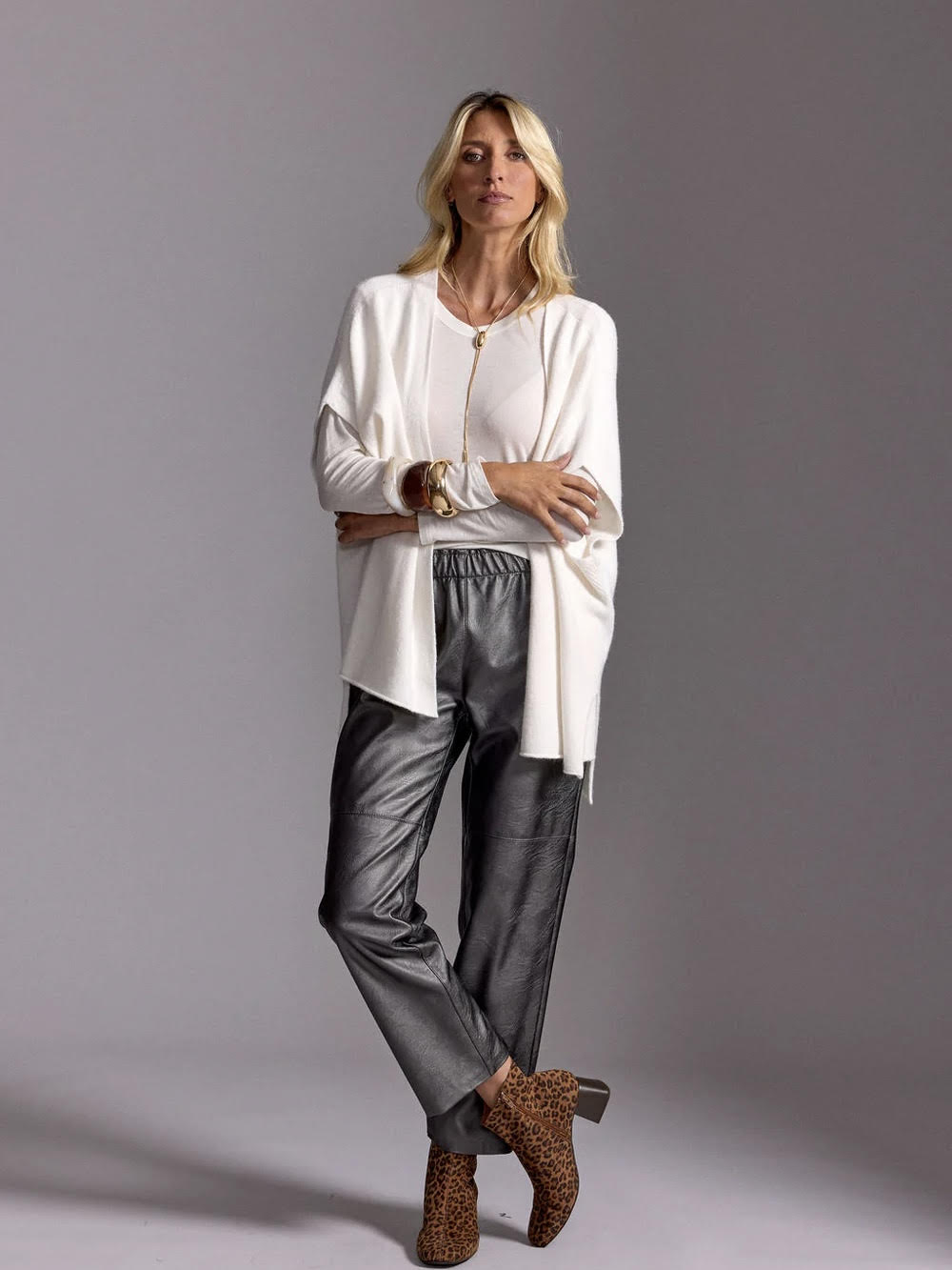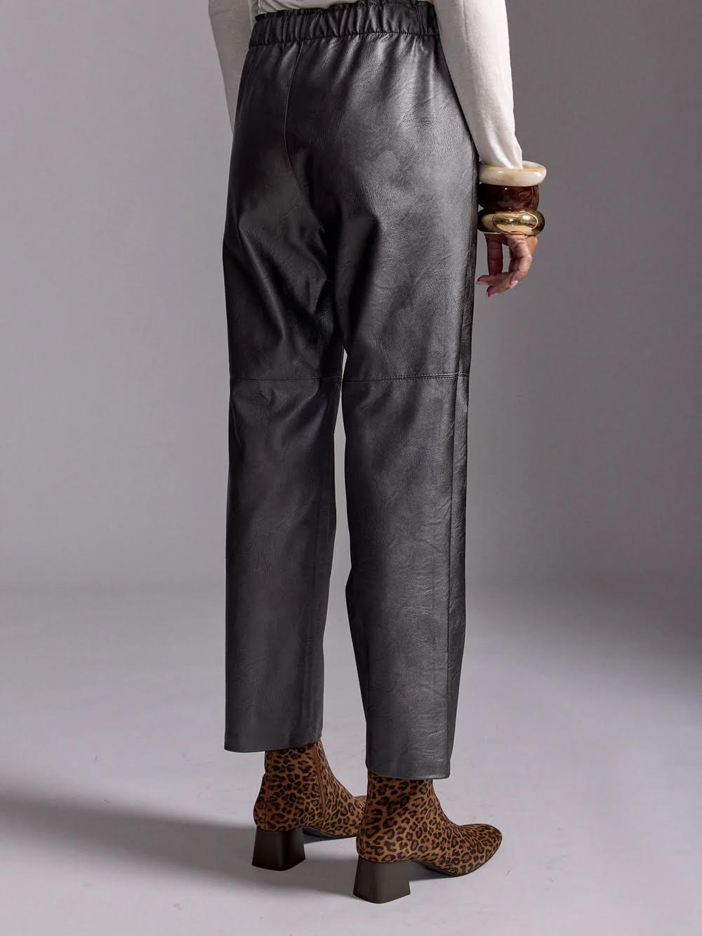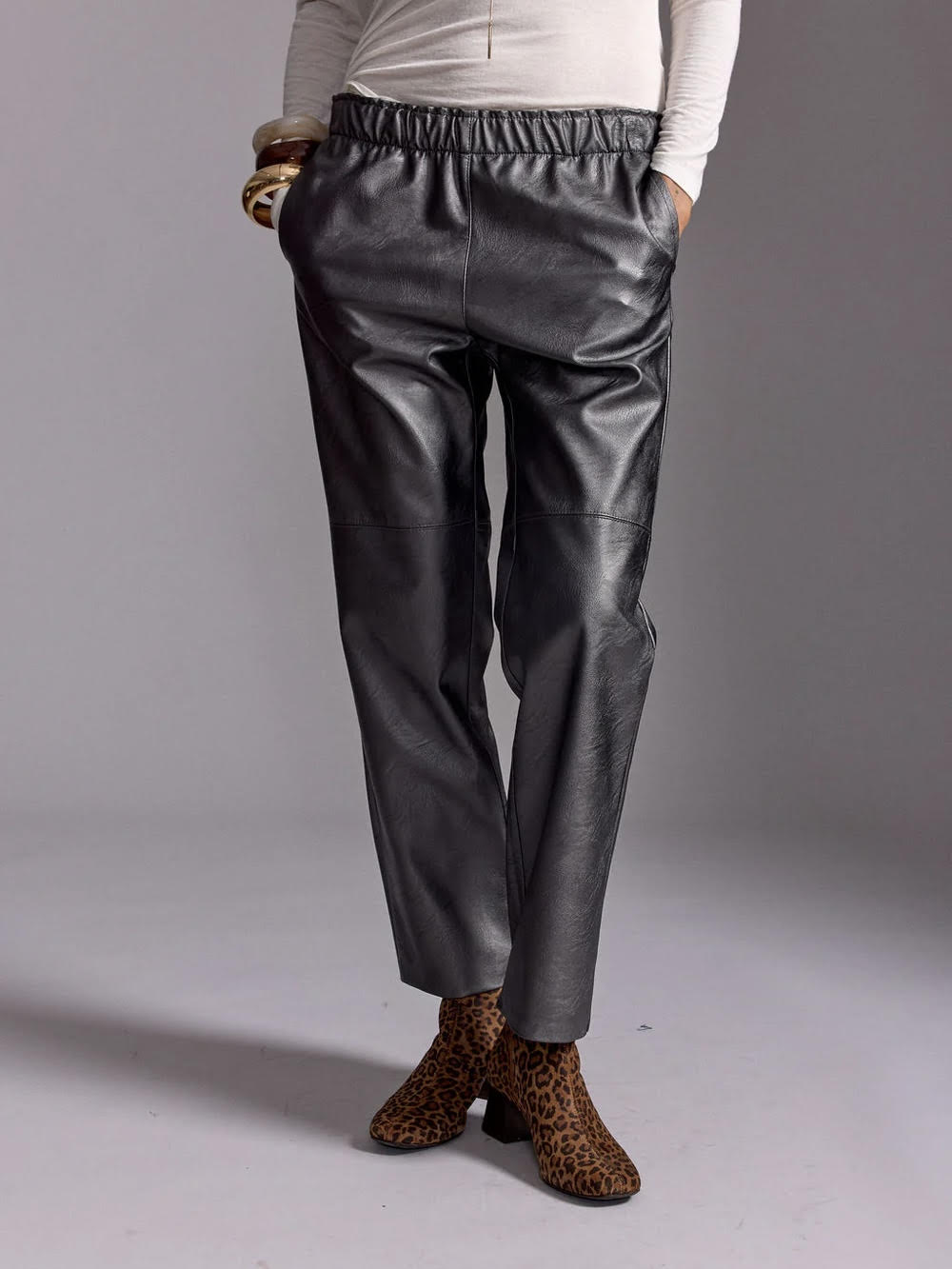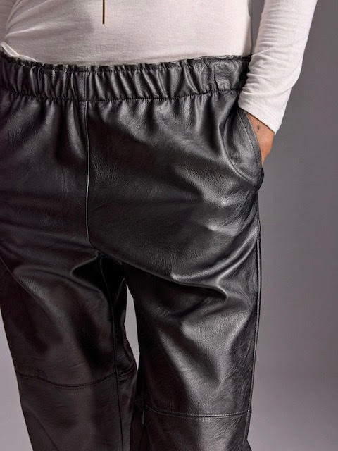 מכנסיים דמוי עור איכותיים, רכים ומאוד גמישים במראה יוקרתי שמתאים לכל שעות היום. למכנסיים גזרה ישרה חמחמיאה עם מותן אלסטית למוחות ללא פשרות. כיסים צדיים פונקציונלים משלימים את הלוק האורבני והעדכני.