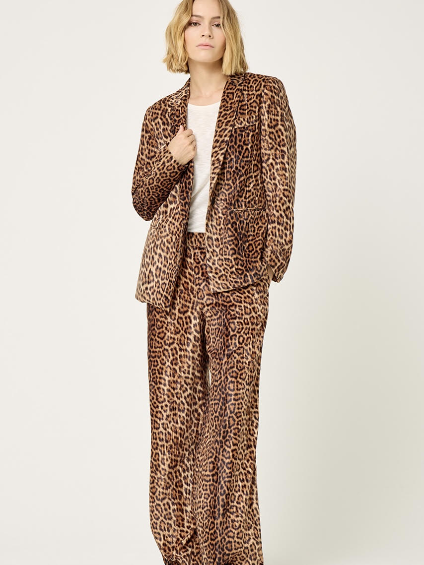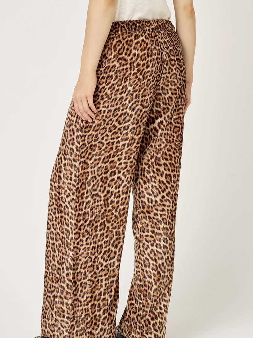 מכנסיים מודפסים בדוגמת ליאופרד נועזת שמוסיפה אופי וסטייל לכל לוק. הגזרה הרחבה מעניקה נפילה רכה ונוחה ומתאימה לשימוש יומיומי או ליציאה עם נוכחות. בד קליל ונעים על הגוף שמלווה אותך בנוחות לאורך כל היום.