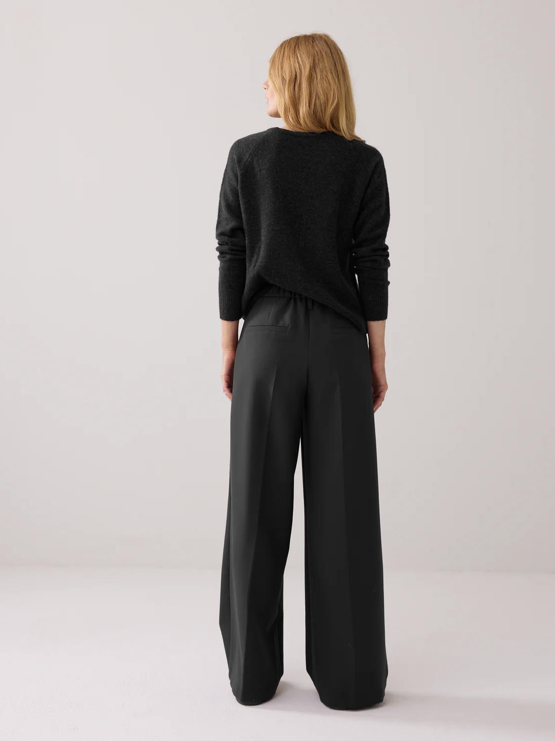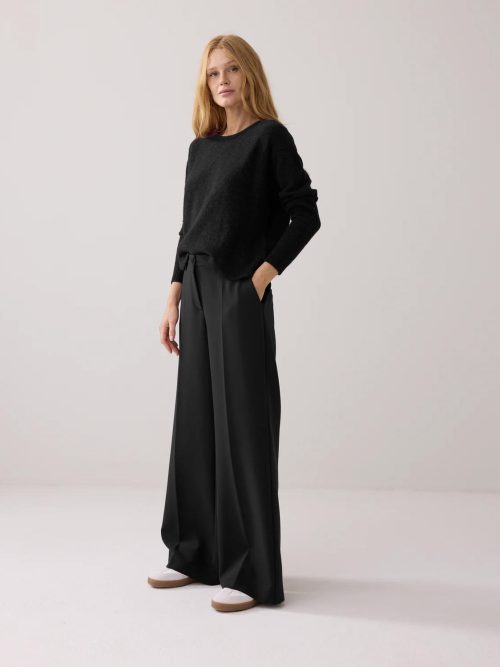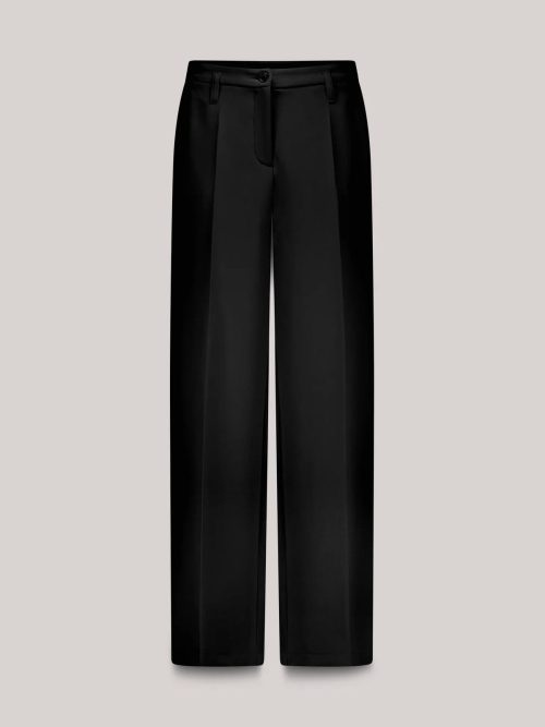 מכנסיים בגזרה רחבה, מחויטים ומדויקים -בצבע שחור המעניקים התאמה לכל הופעה תחושת ניקיון, איכות וסטייל אירופאי.